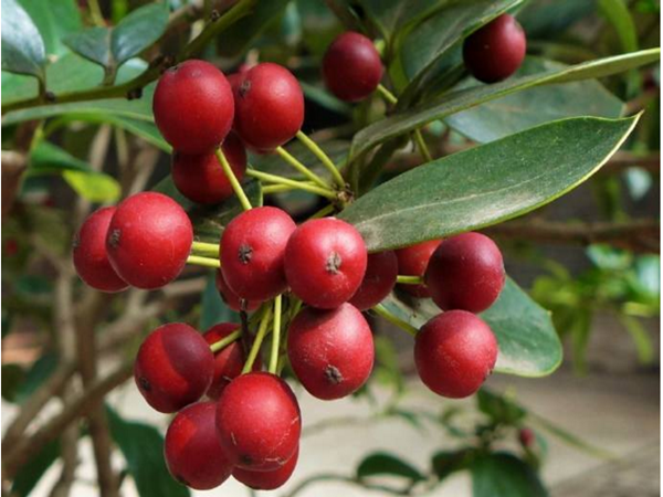 gougufenweiwucigouguheyoucigouguerzhong,shidongqingshugougudeziranbianzhong,changlvguanmuhuoxiaoqiaomu,shuzhongzhifanyemao,yuanlinlvhuakexiujianchengqiuxinghuoxiaoqiaomu,yexingqite,nonglvyouguangze,shuguanyuanzheng,4-5月份開黃綠小花,核果球形,初為綠色入秋成熟轉紅。是優質的觀果觀葉觀形的觀賞樹種植物
