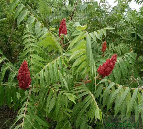 火炬樹屬落葉灌木或小喬木,火炬樹的花期5-7月,果期9-11月yue。奇qi數shu羽yu狀zhuang複fu葉ye,雌ci雄xiong異yi株zhu,頂ding生sheng直zhi立li圓yuan錐zhui花hua序xu,雌ci花hua序xu及ji果guo穗sui鮮xian紅hong色se,形xing同tong火huo炬ju。。直zhi立li圓yuan錐zhui花hua序xu頂ding生sheng,果guo穗sui鮮xian紅hong色se。果guo扁bian球qiu形xing,有you紅hong色se刺ci毛mao,緊jin密mi聚ju生sheng成cheng火huo炬ju狀zhuang。果guo實shi9月成熟後經久不落,而且秋後樹葉會變紅,十分壯觀。原產歐美,常在開闊的沙土或礫質土上生長。