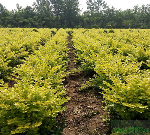 金葉女貞介紹: 金葉女貞(學名:Ligustrum × vicaryi Rehder)是木犀科女貞屬植物,是美國加州的金邊女貞與歐洲女貞樹種雜交而成。落葉灌木,株高2-3米。其嫩枝帶有短毛。葉革薄質,單葉對生。新葉金黃色,因此得名為金葉女貞,老葉黃綠色至綠色。總狀花序,花為兩性;核果橢圓形,內含一粒種子,顏色為黑紫色。花期5-6月,果期10月。 原產於美國加州。中國於20世紀80年代引種栽培。 分布於中國華北南部、華東、華南等地區。喜光,稍耐陰,適應性強,抗幹旱,病蟲害少,萌芽力強,生長迅速,耐修剪。 葉色金黃,觀賞性較佳。盆栽可用於門廊或廳堂處擺放觀賞;園林中常片植或叢植,或做綠籬栽培。 金葉女貞的葉子為絢麗的金黃色,花為銀白色,因此有“金玉滿堂”之意。